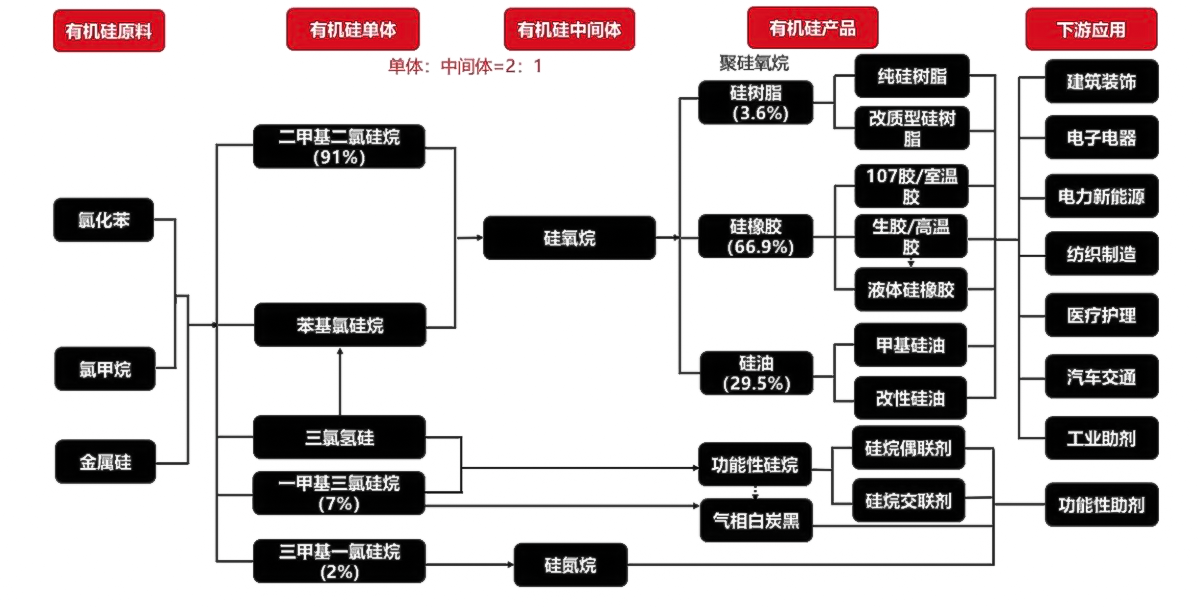 硅烷、三甲基氟硅烷、乙基和丙基氯硅烷、乙烯基氯硅烷等。有机硅树脂的单体生产工艺复杂,流程长。