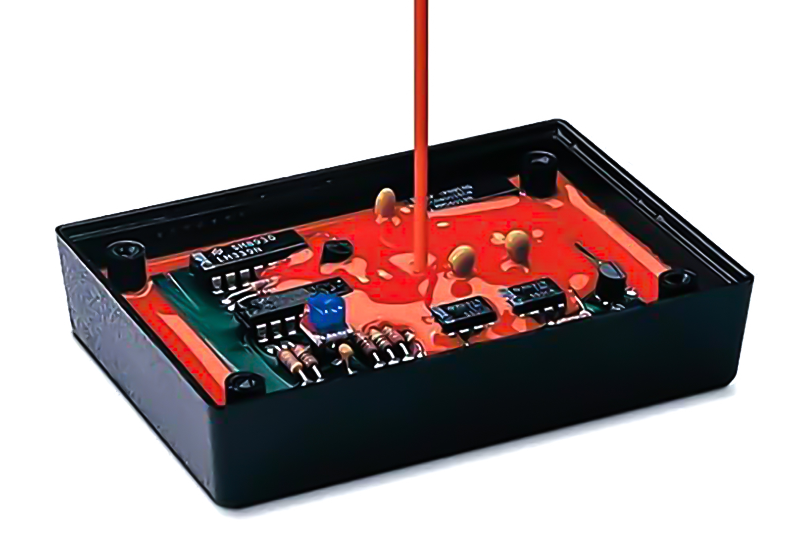 有机硅灌封胶一般都是软质有弹性的。有机硅灌封胶的种类很多,不同种类的有机硅灌封胶在耐温性能、防水性能、绝缘性能、光学性能、对不同材质的粘接附着性能以及软硬度等方面有很大差异。有机硅灌封胶可以加入一些功能性填充物赋予其导电导热导磁等方面的性能。有机硅灌封胶的机械强度一般都比较差,也正是借用此性能,使其达到“可掰开”便于维修,即如果某元器件出故障,只需要撬开灌封胶,换上新的原件后,可以继续使用。